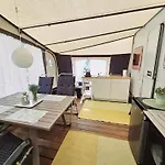 Experience ultimate comfort in the Hel campsite's kitchen, supplied with an electric kettle, a fridge, and kitchenware. Also, guests can use a dining area for self-catering.